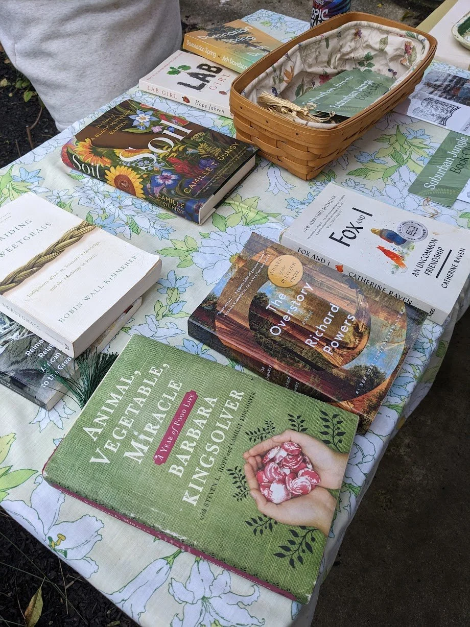 Our Lending Library features books on gardening, native plants, sustainability, and the natural world. It’s a true community library, built on the shared understanding that books are returned so others can read, learn, and enjoy. Your support helps us add new titles and keep the collection growing.